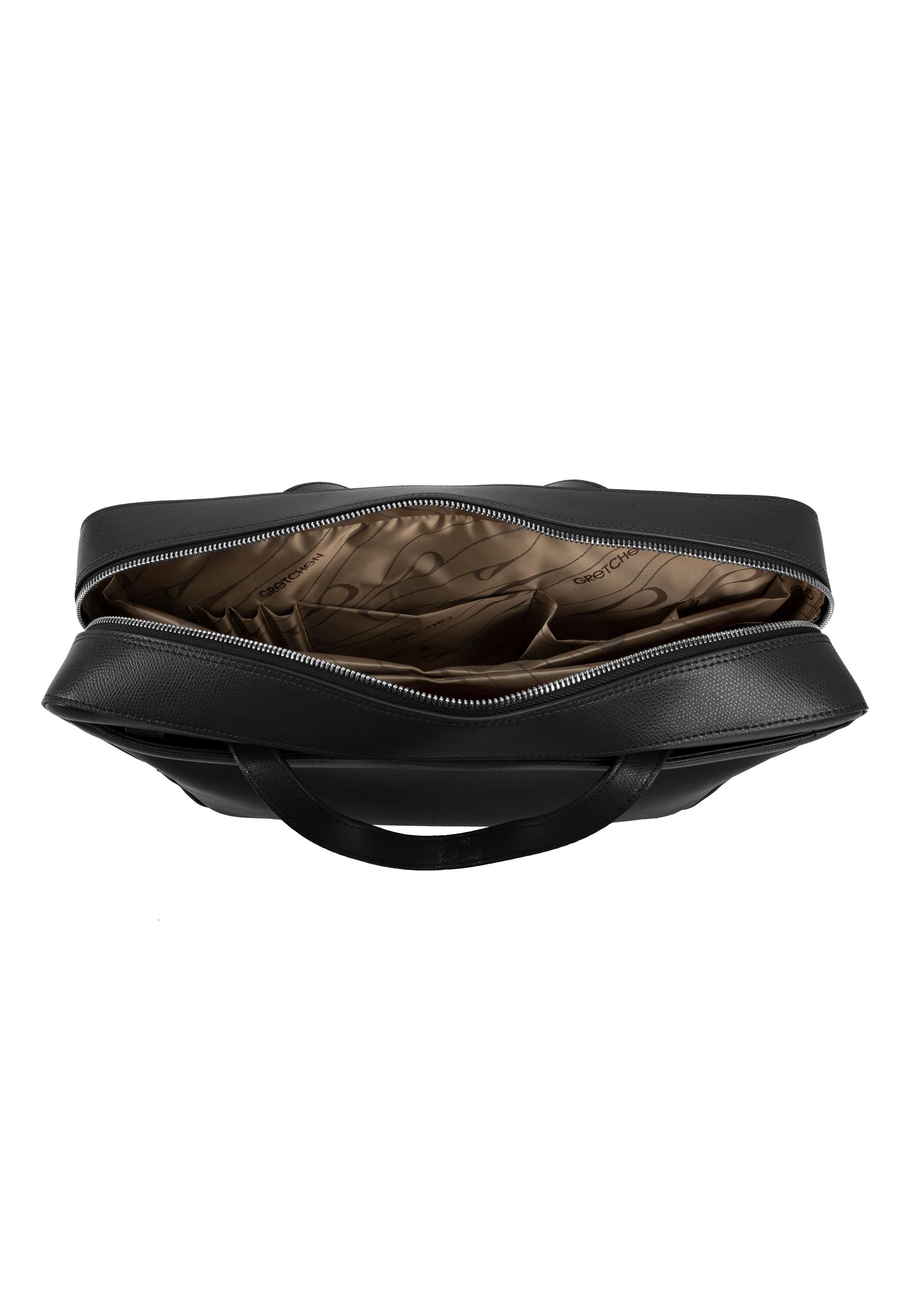 The Crocus Laptop Bag is a business bag in a modern design. Slightly rounded corners make the silhouette look elegant. Made from hard-wearing cowhide, its fine structure really comes into its own. Above all, the Crocus Laptop Bag convinces with its practical layout: the spacious inner compartment with padding is suitable for laptops up to 16". Numerous other compartments as well as a mobile phone compartment and 3 pen holders structure the interior in a meaningful way and help to keep things tidy. The 2 large front pockets with magnetic closure offer additional storage space.