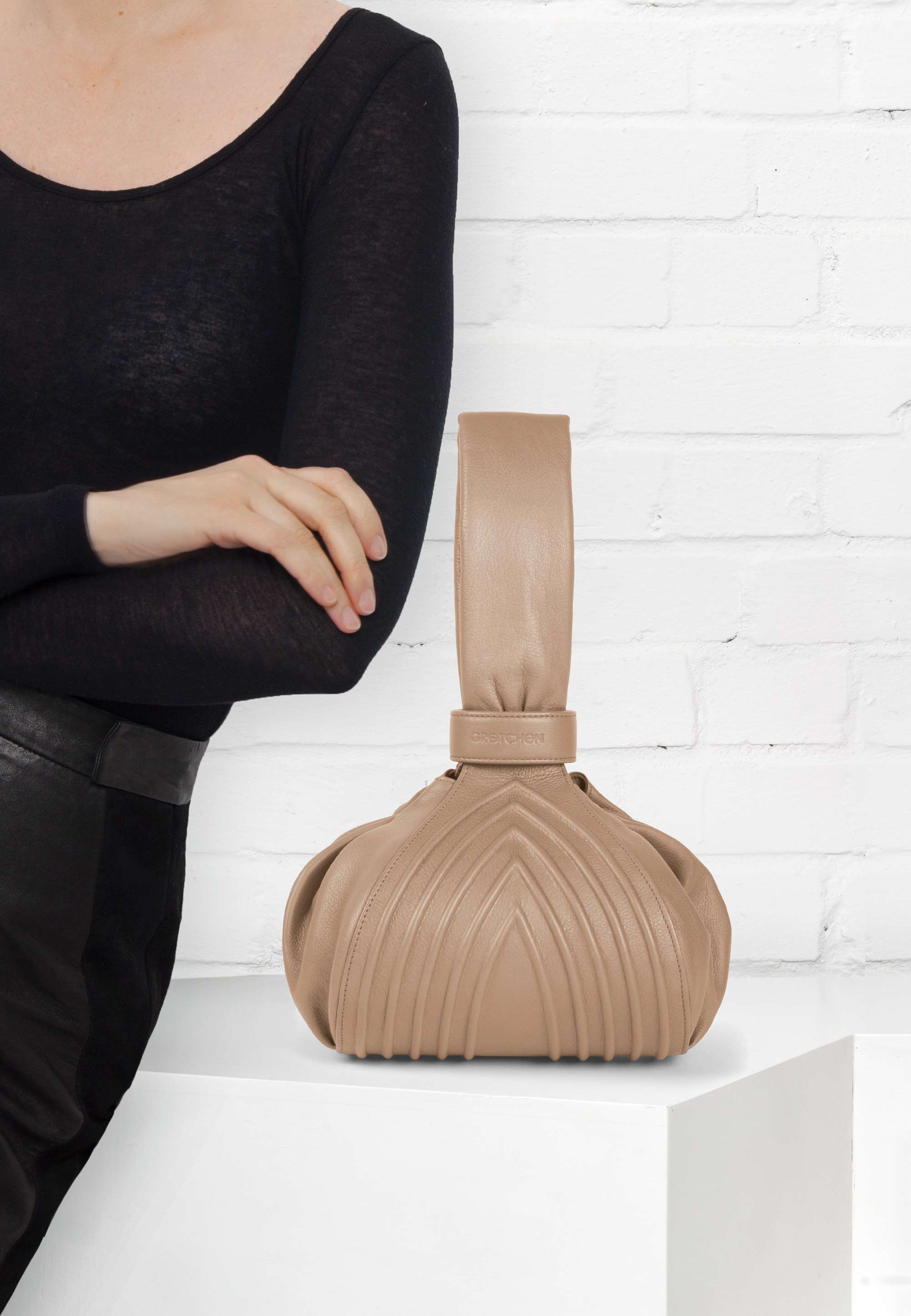 Die Inspiration dieser unvergleichbaren Handgelenkstasche stammt von den beuteligen Abend-Formaten der wilden Zwanziger Jahre und wurde von Gretchen neu interpretiert. Formschön geschwungen verschmelzen die weiche Griffschlaufe und der Korpus zu einer ästhetischen Einheit. Aus feinstem Kalbsleder von Hand gefertigt kann die Tasche über den Unterarm gehängt getragen werden und erlaubt es Ihnen so den Abend über beide Hände frei zu haben… beim Feiern, Tanzen, mit einem Glas in der Hand. Natürlich können Sie Ihre Tango Pouch auch direkt am Griff festhalten, welcher gleichzeitig Teil des durchdachten Verschlusses ist. Er wird durch einen Lederring durchgezogen und verschließt die Tasche so sicher, auch wenn sie abgelegt wird, ohne dass etwas herausfällt. Damit sich die Seitenteile der großzügig geschnittenen Öffnung mit Ziehharmonika-Faltung immer wieder exakt zusammenlegen sind unter dem Leder versteckte Magnete eingearbeitet.